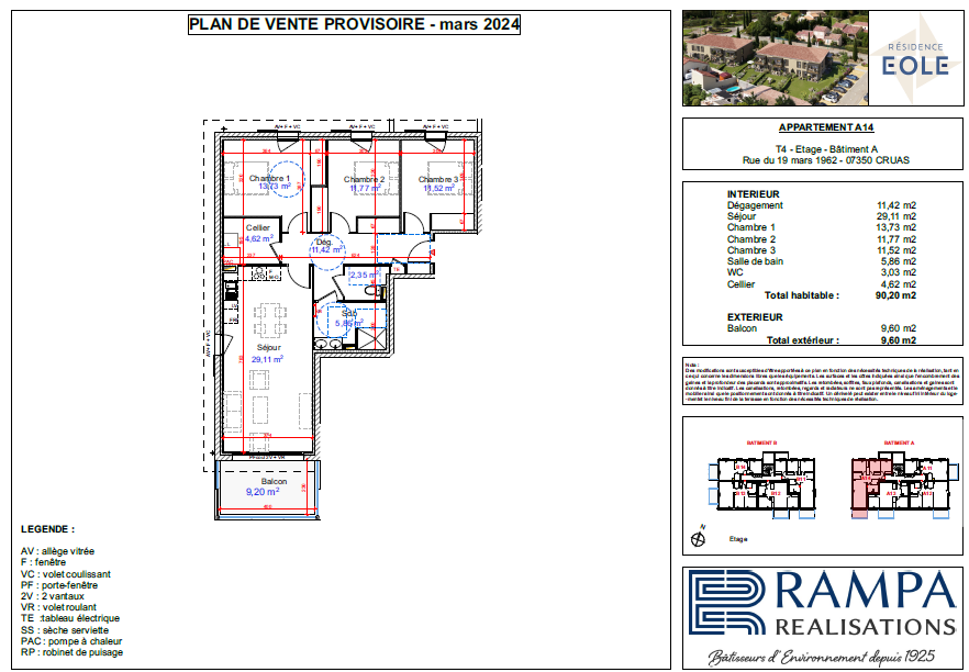 - Salles d'eau équipées (meuble vasque, robinetterie & radiateur sèche-serviettes)
