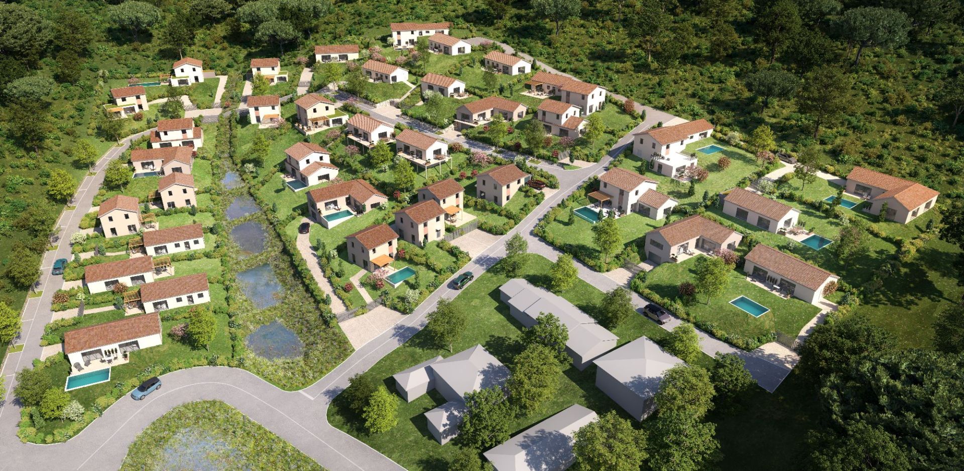 Le lotissement “Les Garrigues de Patatin” est idéalement situé dans un environnement calme avec une vue imprenable sur la nature environnante.